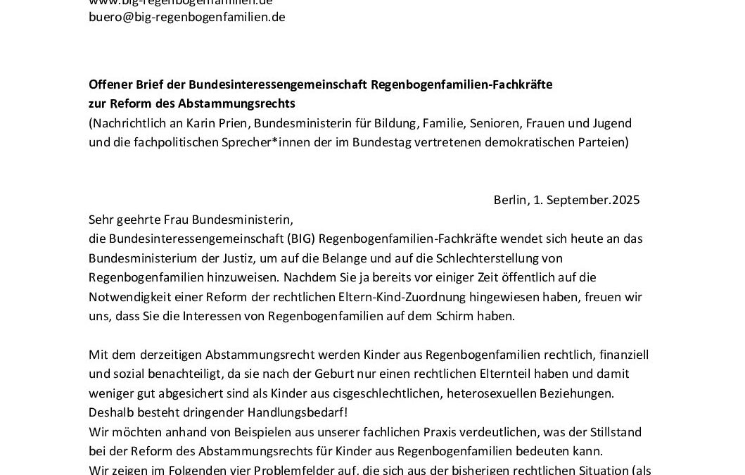 rubiconZur Reform des Abstammungsrechts: Offener Brief an Bundesjustizminister Marco Buschmann - rubicon